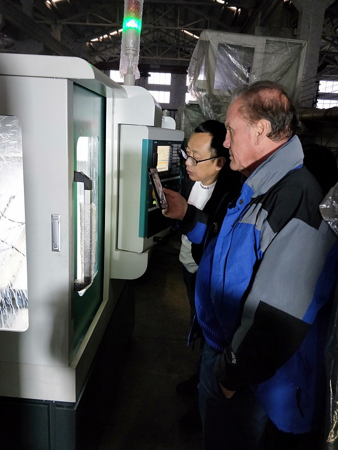 美國客戶、印度客戶來廠驗收全自動數(shù)控車床